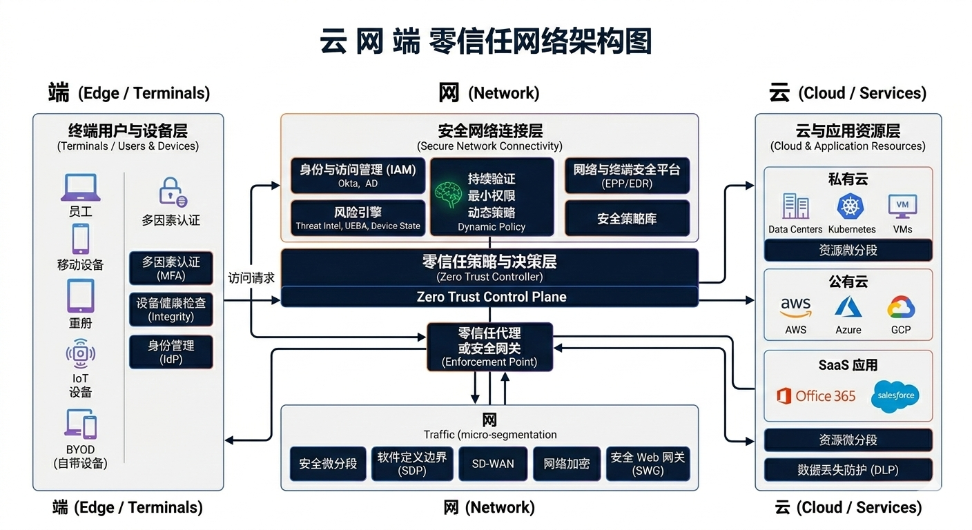 A centrally managed and secure "cloud" + a globally accelerated "network" + a unified "terminal" with comprehensive security capabilities.